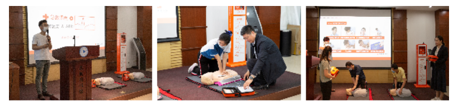 仪式后,北京市红十字会应急救护讲师、美国心脏协会导师张玉石为现场教职员工进行了心肺复苏及AED设备使用培训,详细生动地讲解了心肺复苏的基本常识及AED设备的操作规范与注意事项,现场部分员工参与了实地演练,加深了对心肺复苏及AED设备使用的认识,熟悉AED设备使用操作要领。