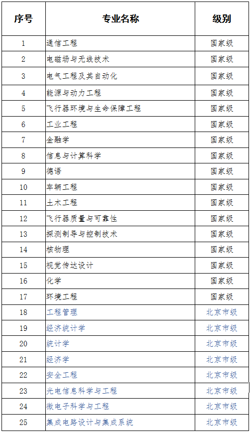 北京伊人992020年度北航入选国家级、北京市级一流本科专业建设点名单(按专业所在学院顺序)